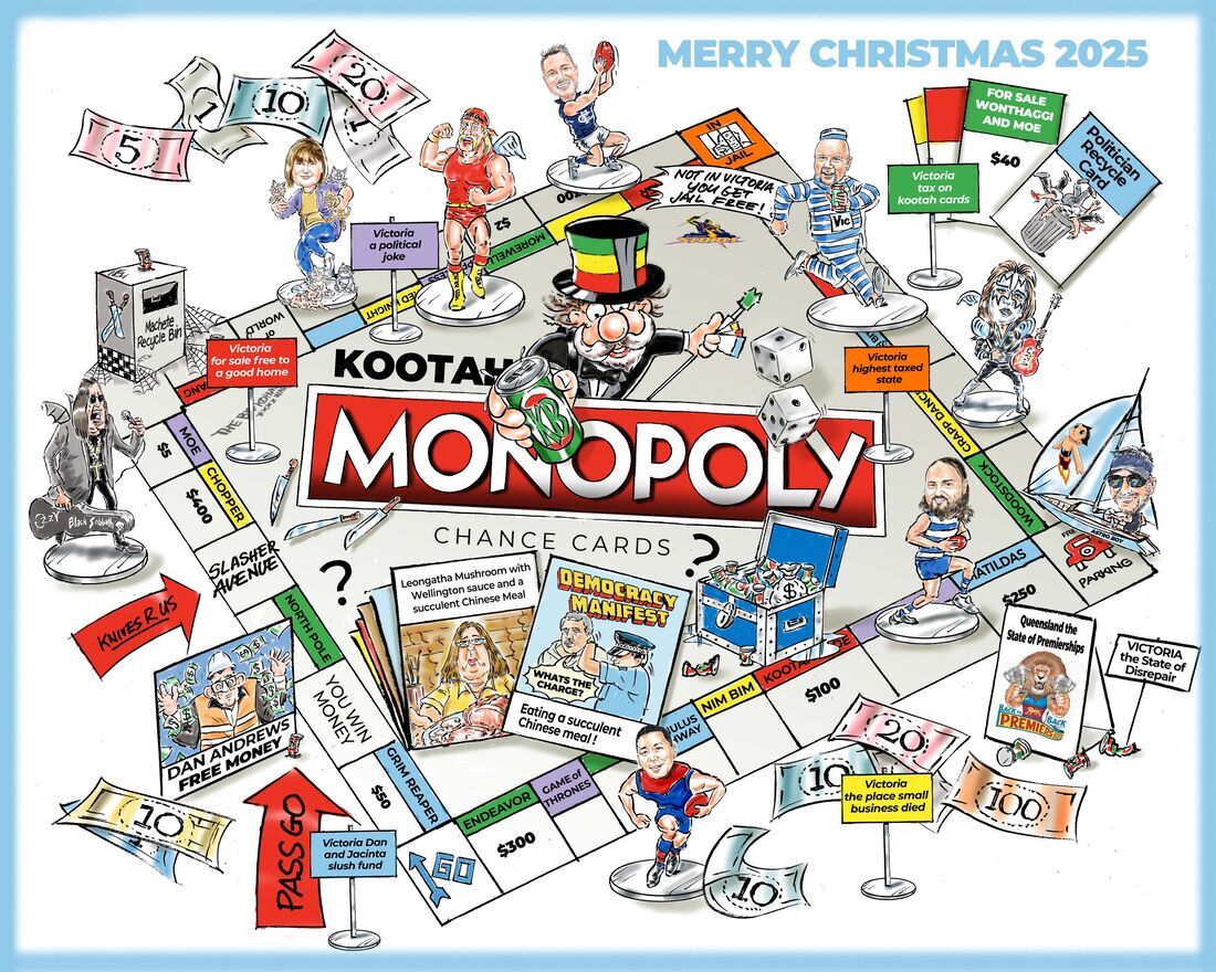 All cards contain a reference to all previous cards, Kootah Bitter esky, Melb Storm and Carlton get a fair run and the Big Kohuna signs the card somewhere. It is a light hearted look back over the year trying not to take ourselves to serious